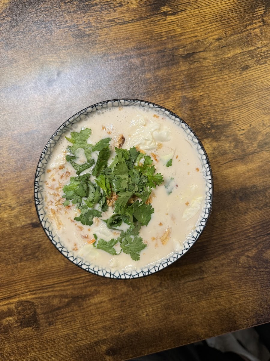 One of the restaurant’s standout dishes is the Halo-Halo, a refreshing and sweet Filipino dessert that brings together a mix of shaved ice, sweetened fruits, and creamy leche flan. It’s the perfect treat to cool off on a warm day or to end a meal on a sweet note. For those who prefer savory dishes, Fiestambayan's Pad See EW offers a delicious stir-fry of flat rice noodles with a savory blend of chicken, vegetables, and a rich sauce. Another must-try is the Tom Kha Gai, a fragrant Thai-inspired soup made with tender chicken, coconut milk, and a unique combination of spices that’ll keep you coming back for more.